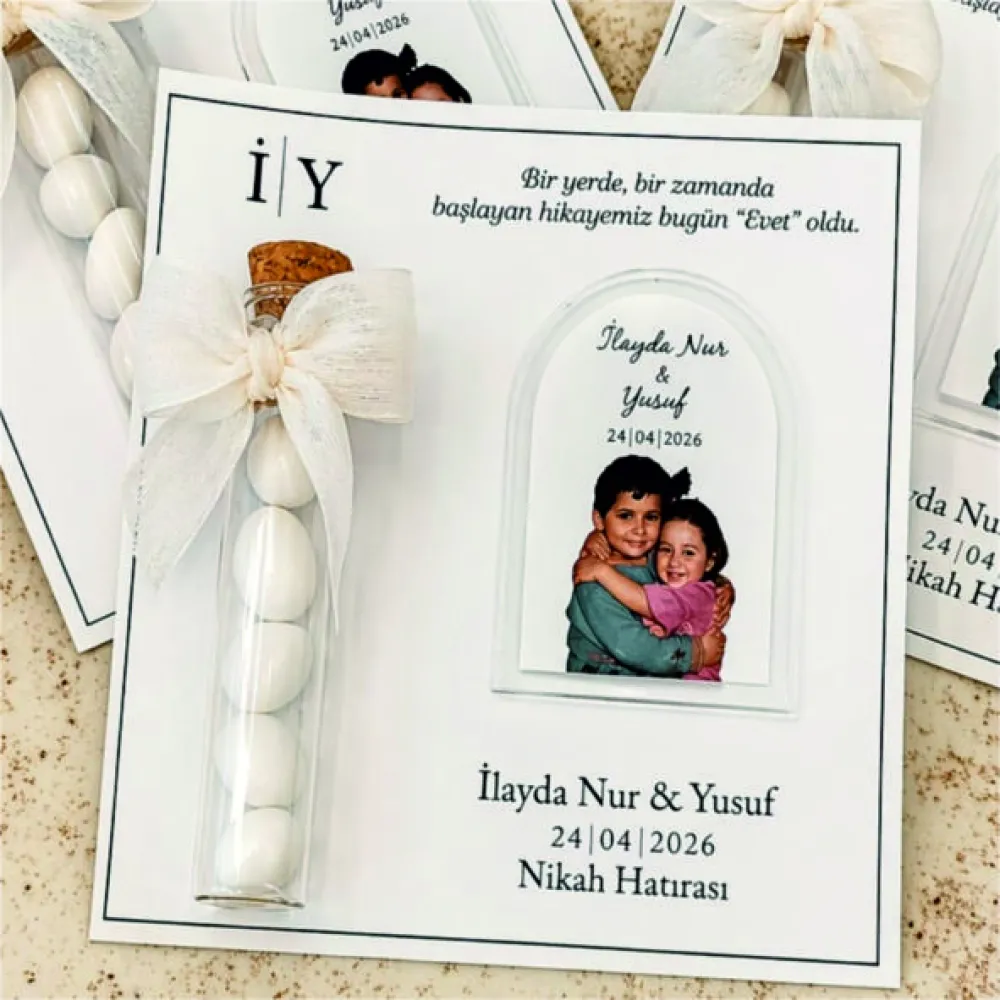 Kartlı pleksi resimli magnet cam tüp şişe de kaysı çekirdekli şeker