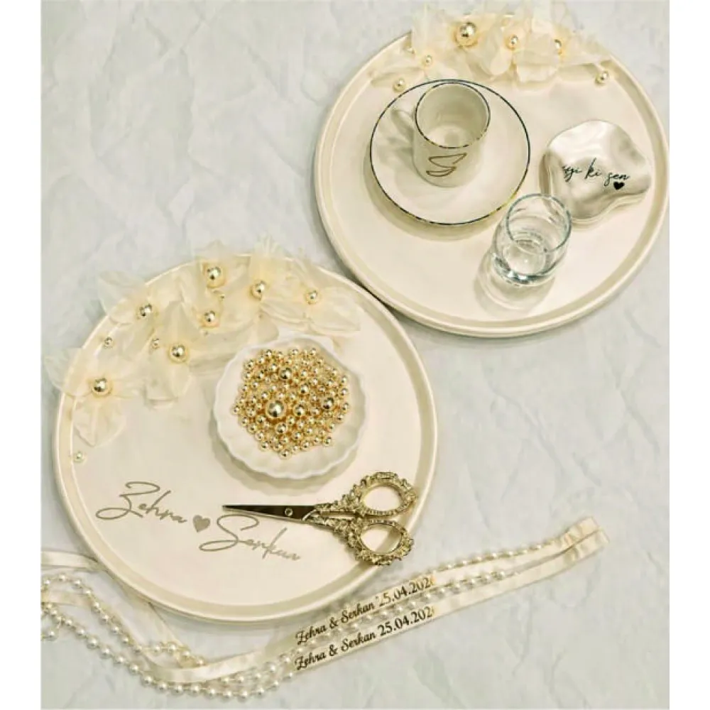Sedef Boyalı Taş Tepsi Set Ve İsimli İnci Kurdale